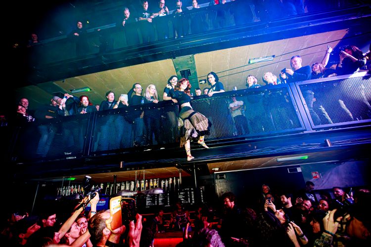 - Die Spitz. Het viertal ragt er meteen flink op los met een keiharde combinatie van metal, grunge en hardrock. De fotografen zijn druk in de weer om alle moshcapriolen van het publiek en de dolle frontvrouw vast te leggen. Met als hoogtepunt het beklimmen van het balkon door de zangeres.