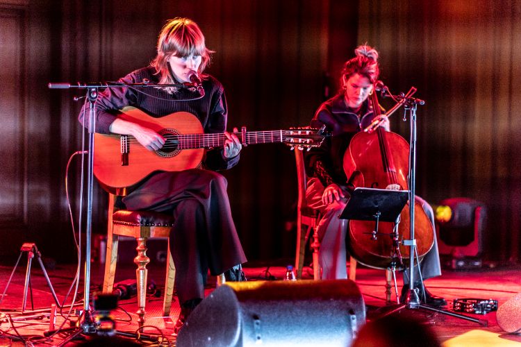 Net als op de Grauzone-zaterdag geeft vandaag alweer een artieste het eerste optreden in Nederland: De Vlaamse Fenne Kuppens (foto hierboven en onderste foto) met een solo-optreden. Als frontvrouw van de donkere postpunkformatie Whispering Sons is ze met haar bezwerende performance wel wat gewend. In de Lutherse Kerk vindt ze het een stuk spannender. Maar al gauw zet ze, samen met een celliste en een pianist, een indrukwekkend optreden neer. Gebogen over haar akoestische gitaar toont ze op gloedvolle wijze aan dat haar stembereik niet alleen in het lage gebied indruk maakt. In breekbare liedjes met de kracht van de herhaling krijgt ze met een intens concert het publiek muisstil.