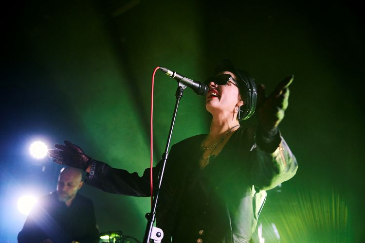 Het Franse Minuit Machine (openingsfoto en foto hierboven) staat voor de derde keer op Grauzone, maar voor het eerst in de grote zaal van Paard. En ook daar zijn zangeres Amandine Stioui en haar elektronicasecondant een schot in de roos. Door het weidse zaalgeluid komen de zalvende tonen van het duo uitstekend tot hun recht. De muziek van Minuit Machine heeft een louterende maar vooral onthaastende werking, ondanks de soms stevige beats. En dat is op een zondagavond, na een lang en vermoeiend festivalweekend, een zeer gepast optreden om te ondergaan. De vaak dromerige zang van Stioui maakt het dan ook helemaal af.