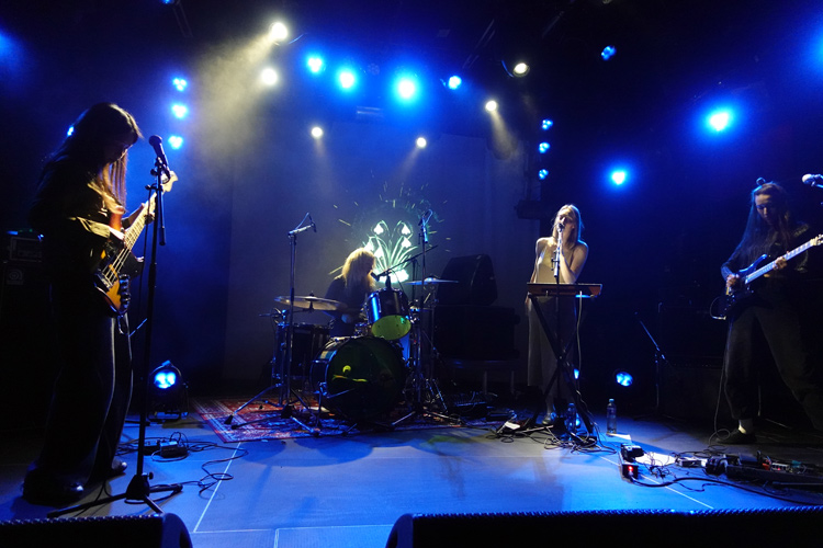 Live is dat niet anders. De struikelritmes van drumster Nadezhda Samodurova zijn, samen met de gortdroge baslijnen van Anna Moskvitina, de aanjagers van een meeslepend optreden. Het spel van gitariste Galla Gintovt gaat bedrieglijk achteloos van gruizig naar dromerig, en van onheilspellend naar berustend. De uitstekende, feeëriek Russische zang van toetseniste en dwarsfluitiste Alina Evseeva komt in het livegeluid nog beter naar voren dan op plaat. Zo ontstaat een mystiek en beeldend concert dat diep op je gemoed inwerkt, waarin traditionele en moderne tonen op een enerverende manier vervloeien. Het stemmige lichtgebruik in pasteltinten versterkt dit alleen maar.